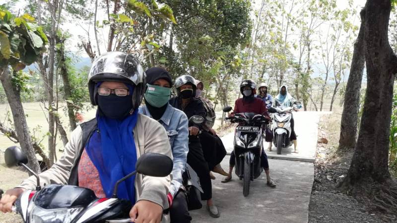 Brebes – Rombongan guru SMPN 04 Bumiayu, Kabupaten Brebes, Jawa Tengah, menyempatkan diri menjajal jalan sepanjang 2,2 kilometer, dari Dusun Karanganyar menuju Dusun Kedung Kandri, Desa Kalinusu, Kecamatan Bumiayu, yang baru saja selesai dibuka alat berat Kodim 0713 Brebes, melalui program TMMD Reguler 109. Rabu (30/9/2020).